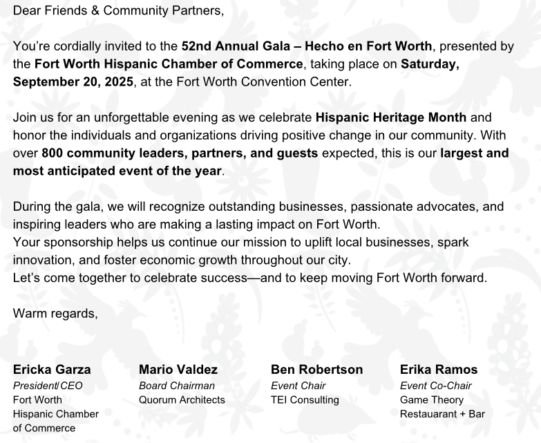 The Fort Worth Hispanic Chamber of Commerce believes in the importance of supporting our local businesses and highlighting our flourishing Fort Worth community.